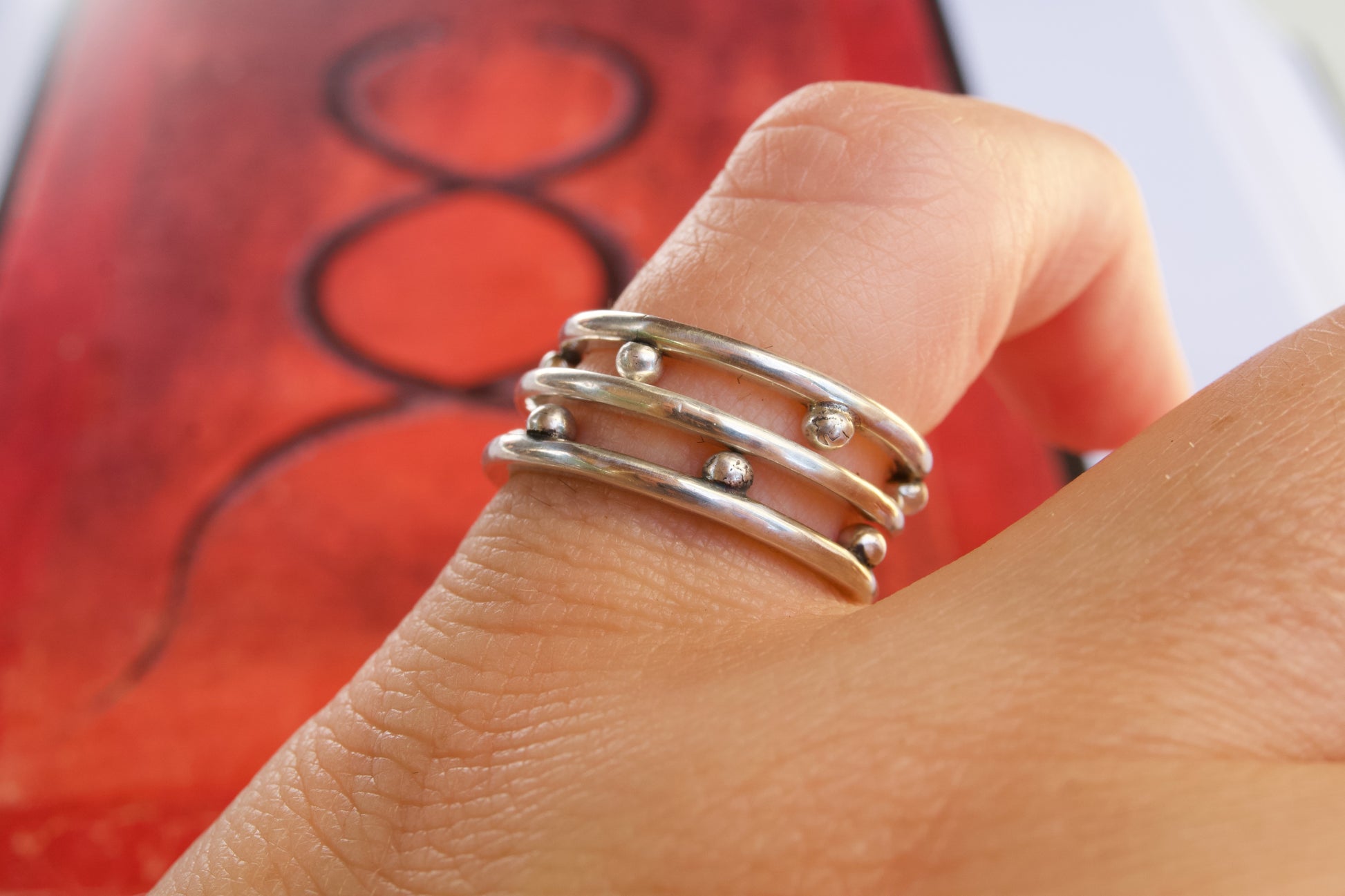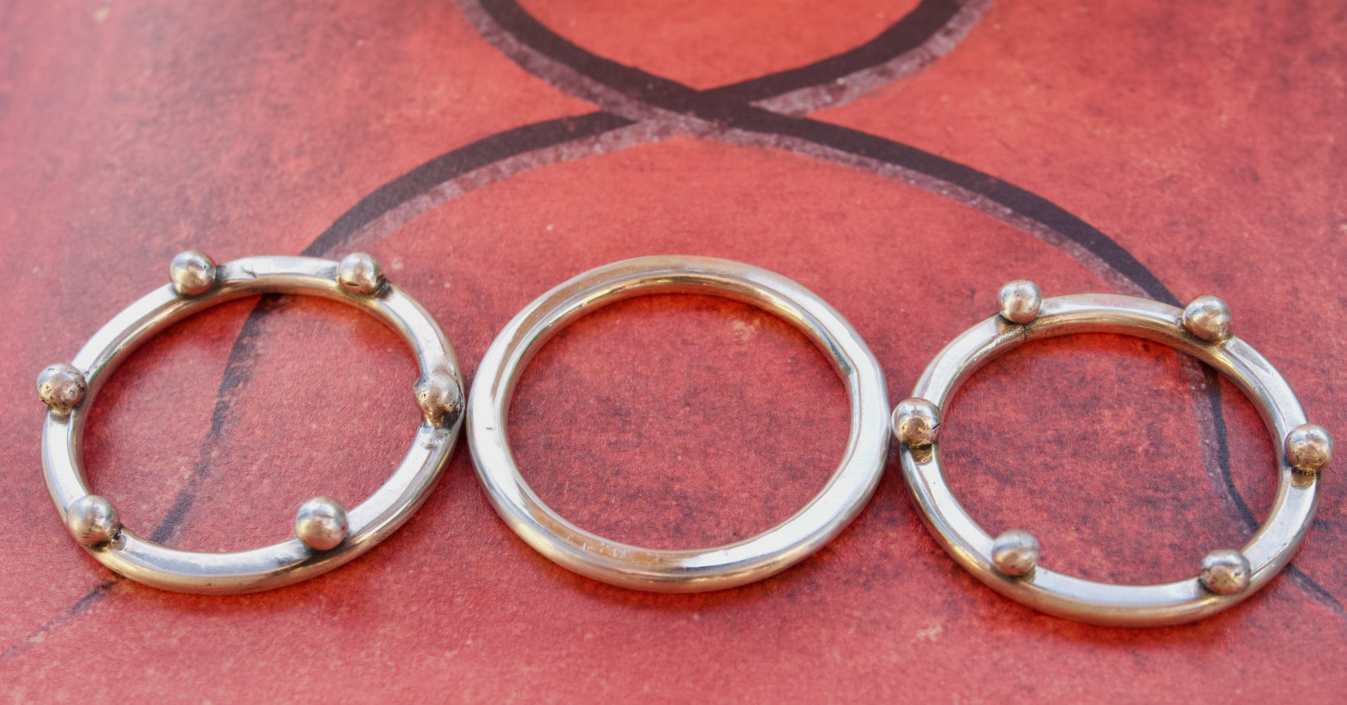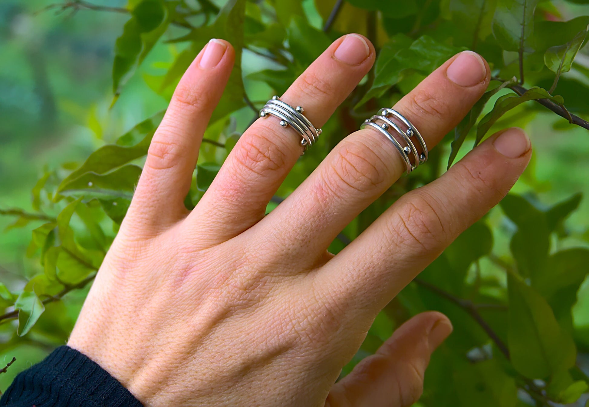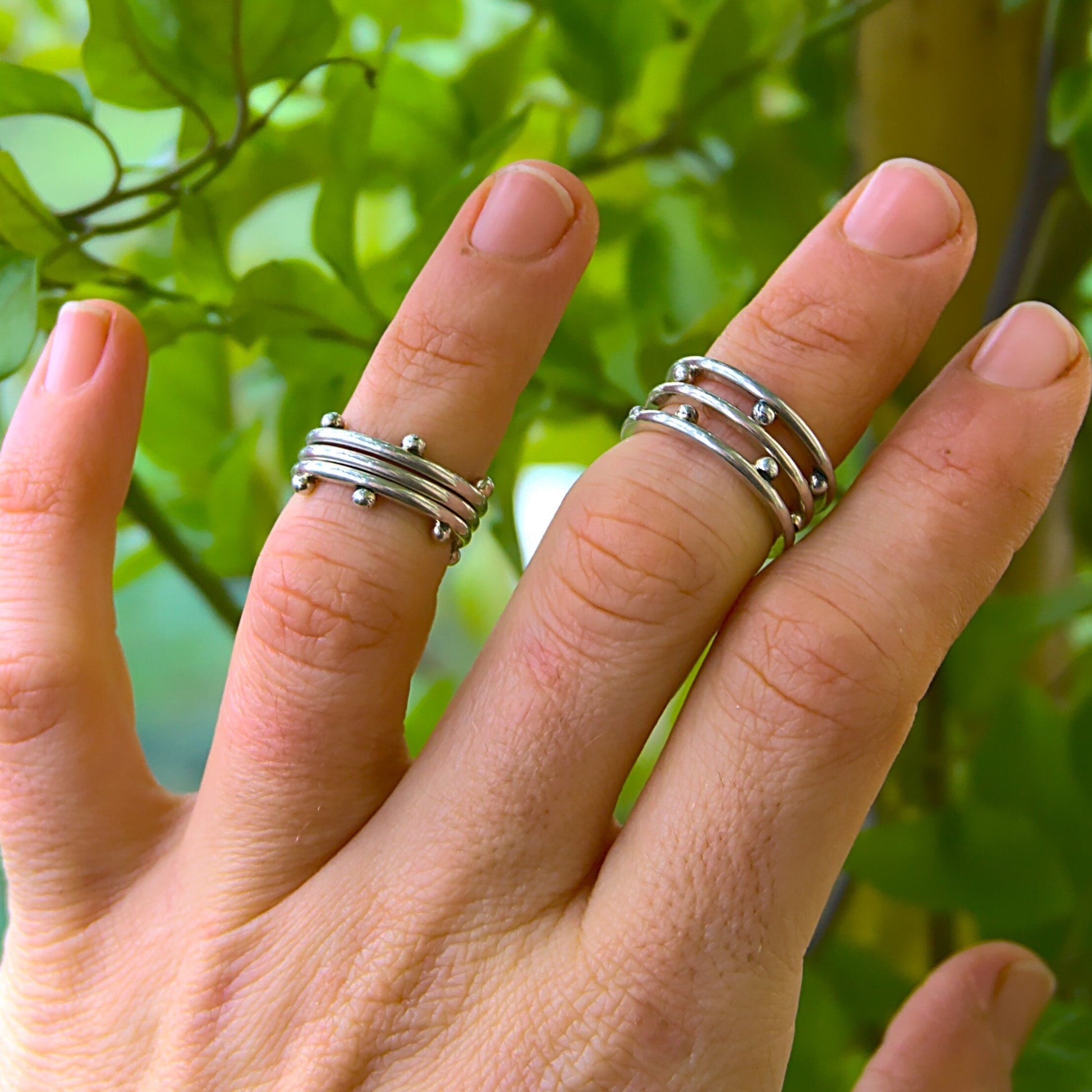 The Dot Stack is a playful ring set of three, and will give you over a dozen different ways to wear them. Wear one band for a dainty and feminine look, mix and match with your ongoing stacking rings collection or wear all three together to get all of the different possible combinations.