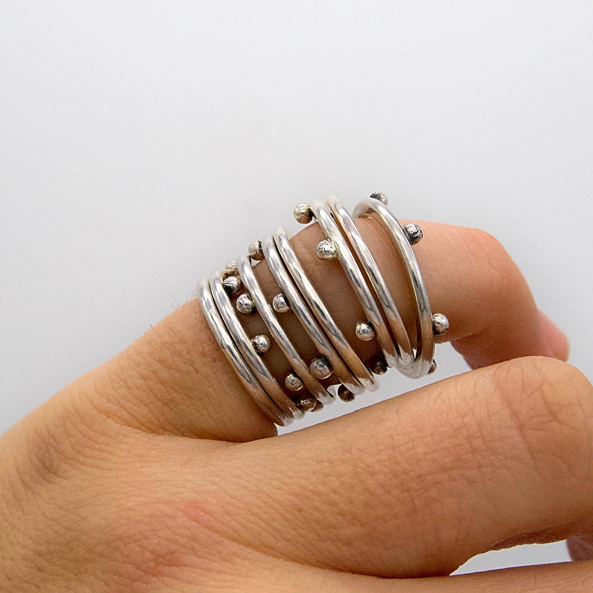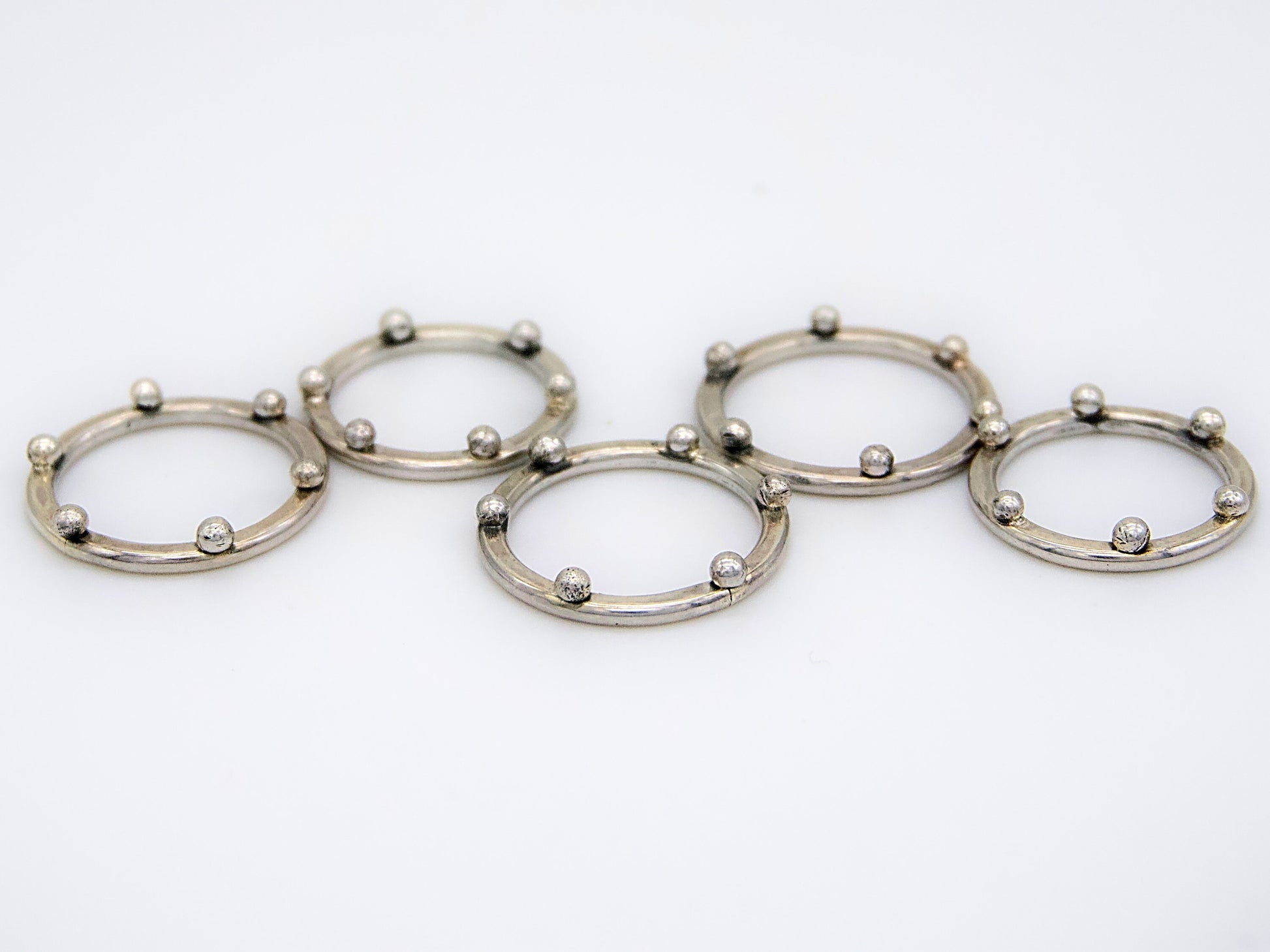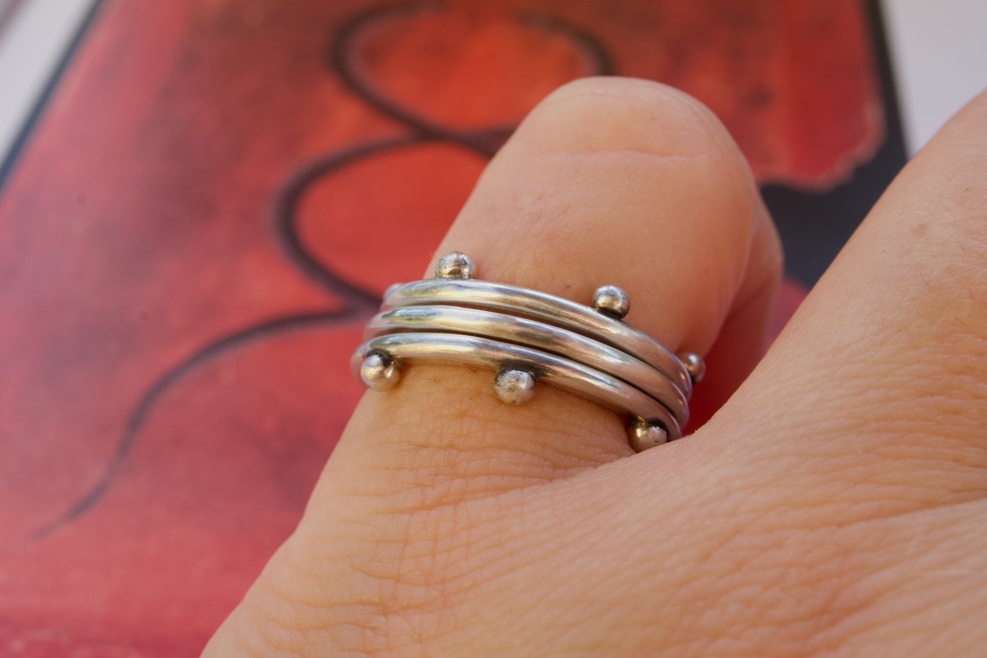 If you order one or two Dot Stackers, you will get the bands with the silver ball embellishments, The set of three includes a blank stacker, which will increase the possibilities of how to wear the set.