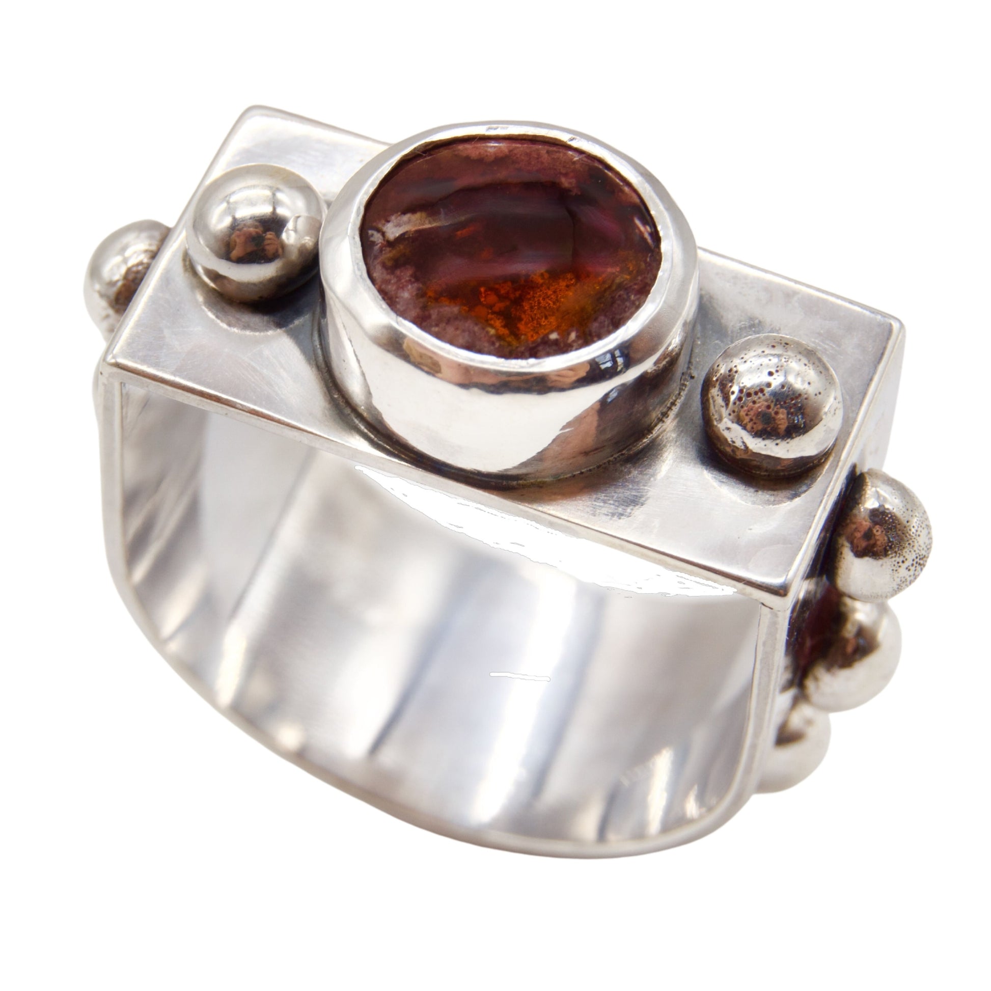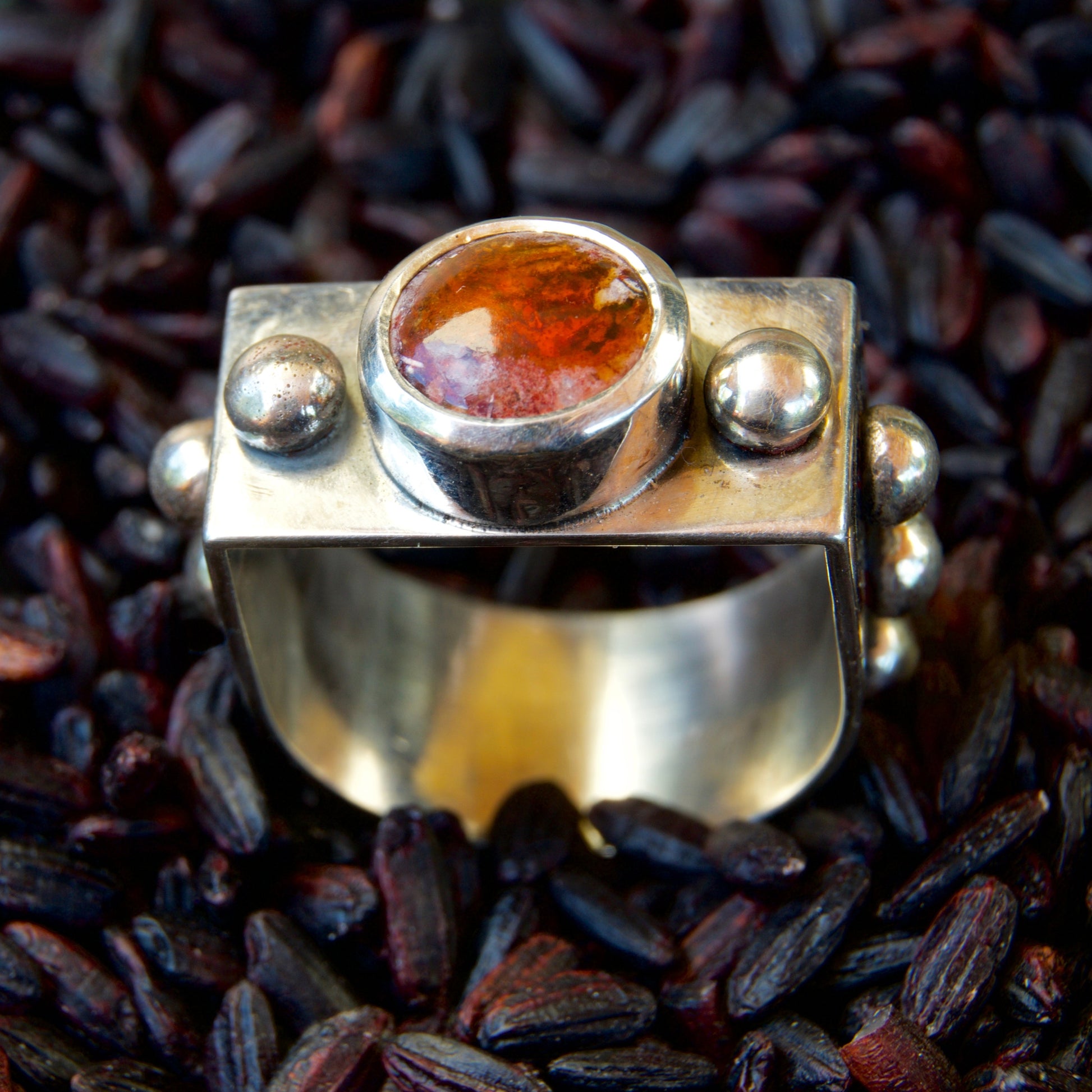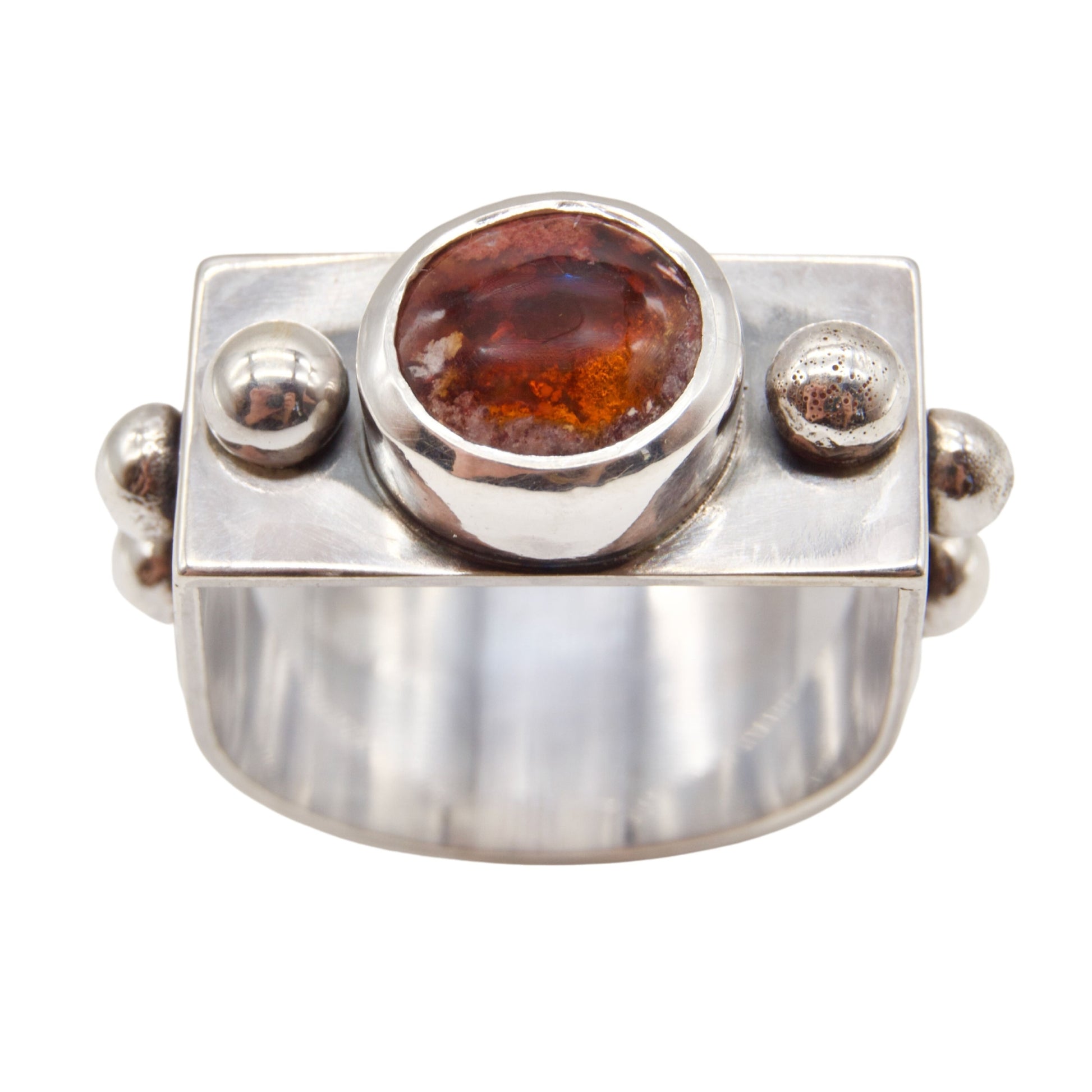 The Rebel's Flame Ring stands as a symbol of artistic rebellion; a testament to those who embrace their unique creative spirit and choose to live differently. Featuring a Mexican Fire Opal whose fiery essence commands attention & respect.