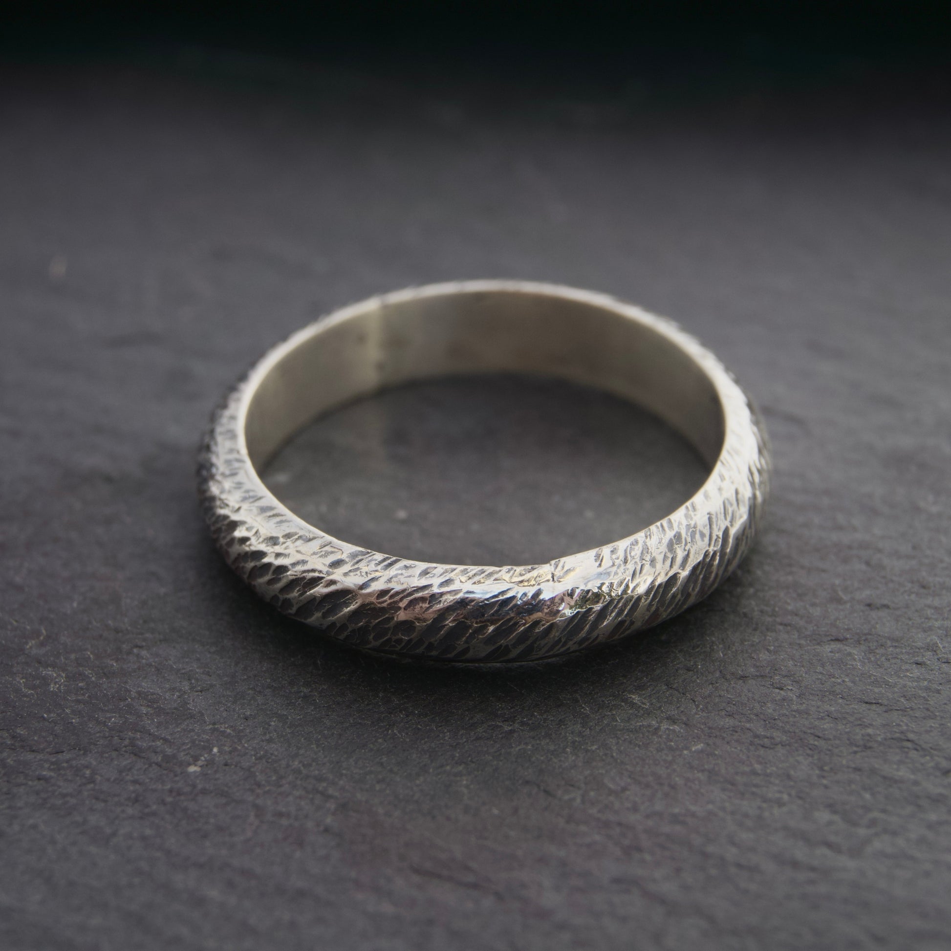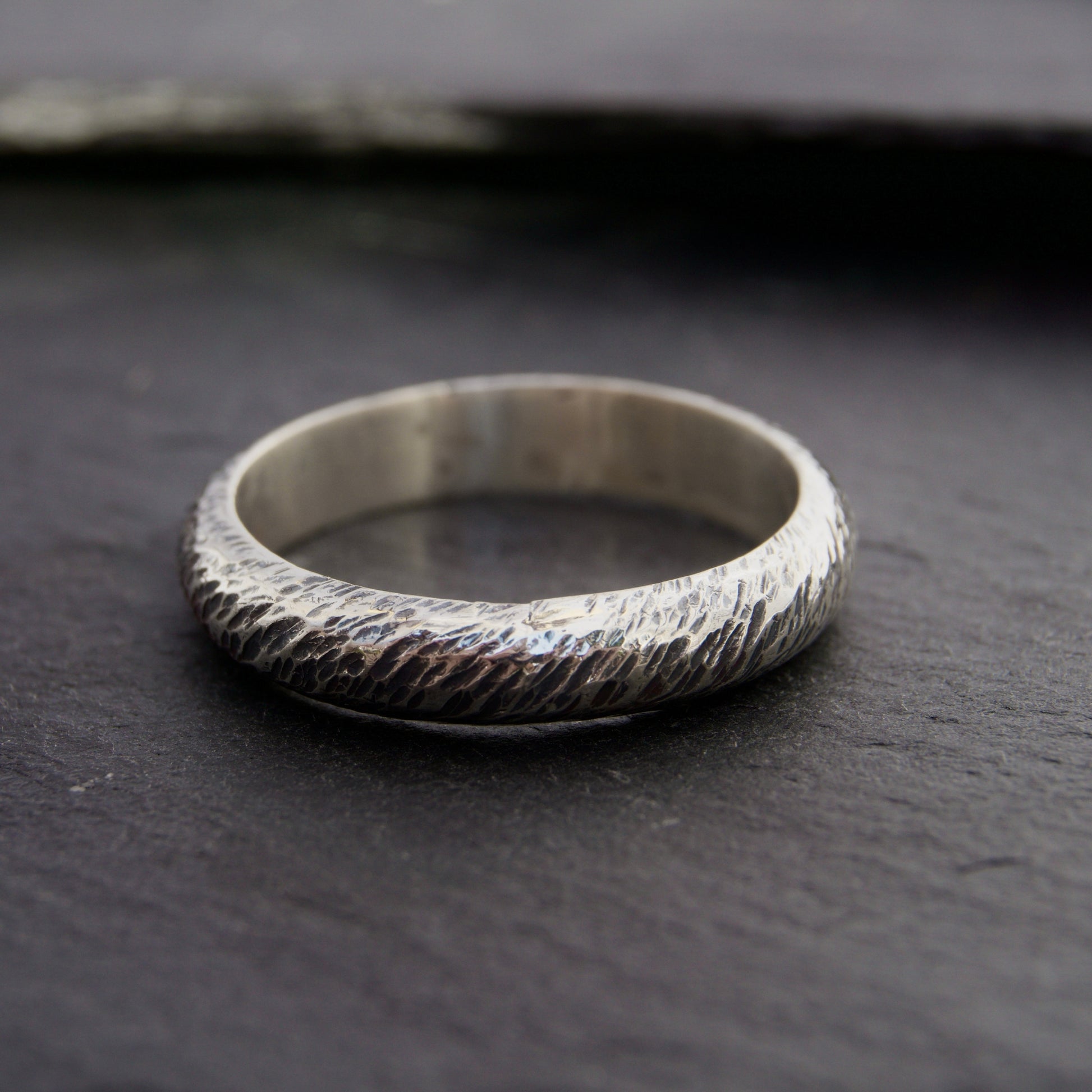 This band looks great when stacked in twos with another ring from the Masculine Bands collection. I especially love mixing one of the hand-hammered bands with one of it's plainer cousins, like The Mirror Band or The Matte Band.