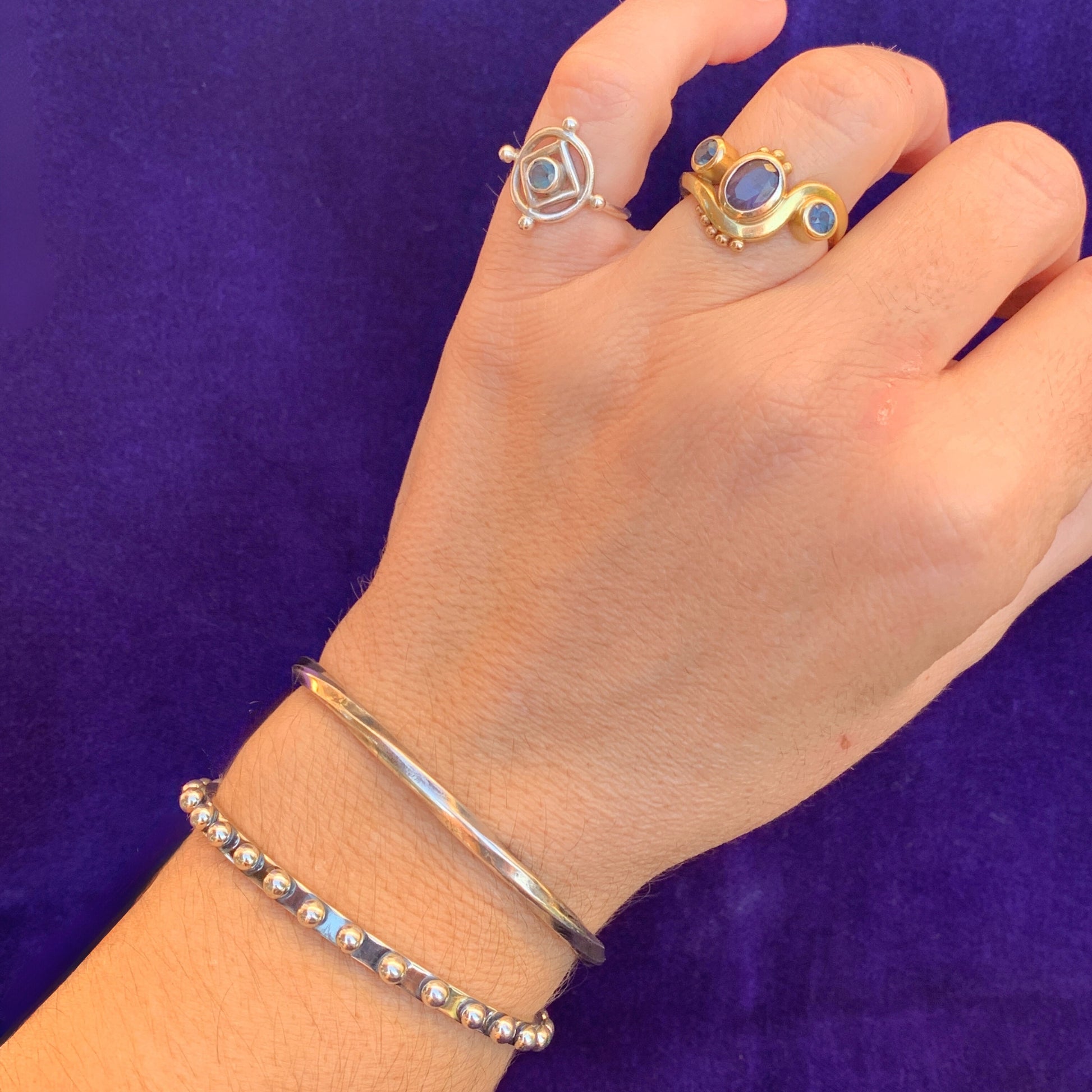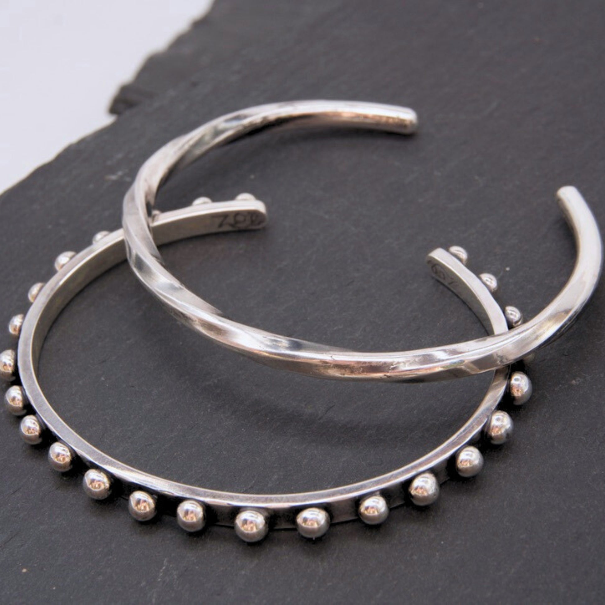 Wearing this bracelet is a link to the ancient p[ast, a nod to the timeless practice of marking our bodies with meaning and beauty. Hand-forged in solid sterling silver, using the same tools and techniques that jewelry has been made with for thousands of years.